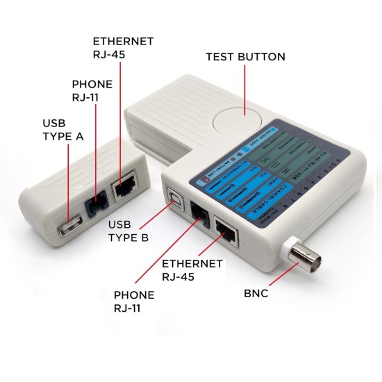 - Can test RJ11/RJ45/USB/BNC cables