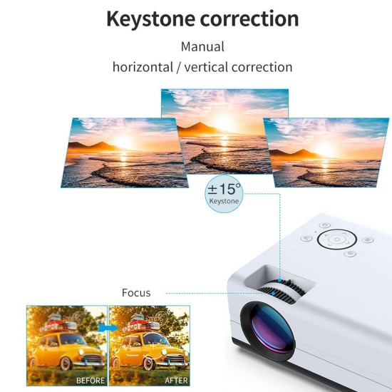 - Wide Application: Home projector can manually adjust the keystone correction by 15 degrees, and can be used for a variety of purposes, ideal for home theater, video conferences, and presentations, movie nights, and gaming.