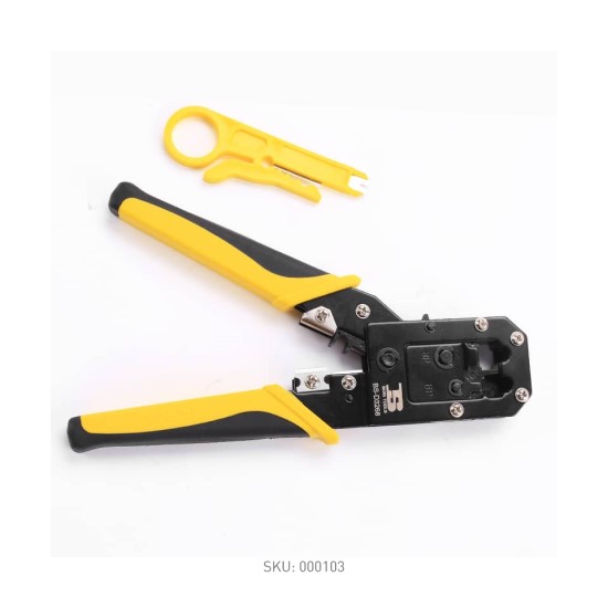 BOSI BS433268 Modular Plug Crimper Pliers Tool w/ Cutter for 8P8C Network Cable – Yellow + Black. For crimping modular plug 8P8C / RJ-45, 6P6C / RJ-12, 6P4C / RJ-11 & 6P2C, 4P4C & 4P2C.
