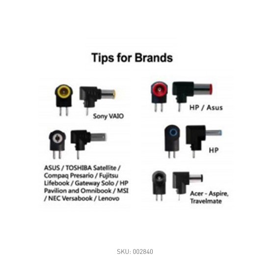 > One output for Notebooks( includes pin to charge HP, ASUS, Sony VAIO, ACER, Compaq, Toshiba, MSI,, Second output for Mobile devices