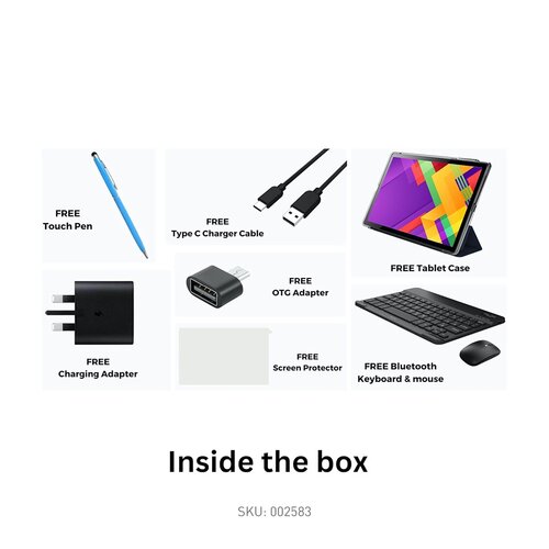 Case, Charger, Keyboard, Mouse, OTG Adapter, Screen Protector, Touch Pen, Type C cable, User Manual